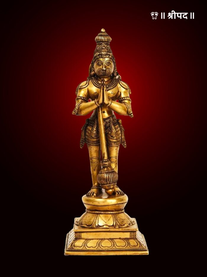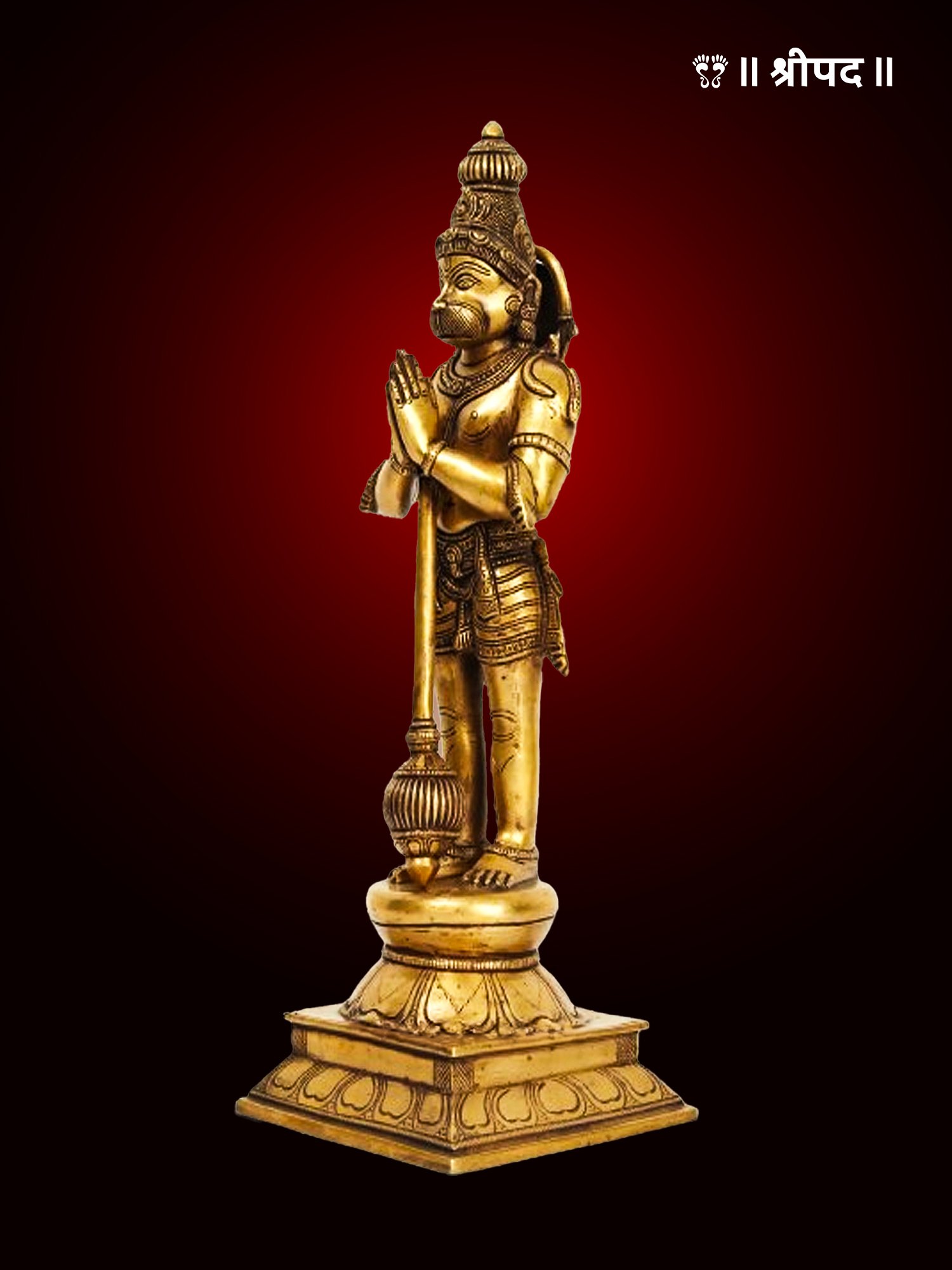 Standing Hanuman with Namaste Idol | 16-Inch | Brass