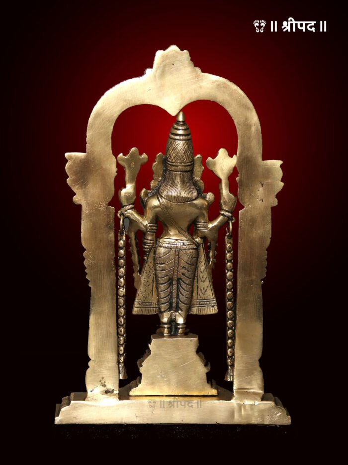 Standing Tirupati Balaji (Venkateshvara) with Kirtimukha Arch | 13-Inch | Brass