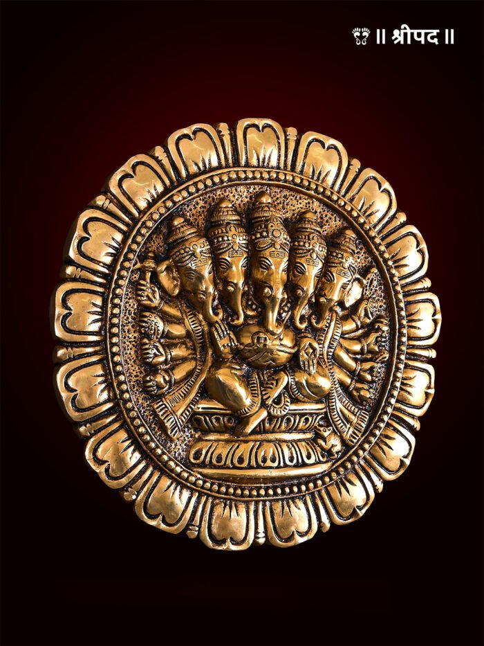 Superfine Panchmukhi Ganesha Wall Hanging | 11.5-Inch | Brass