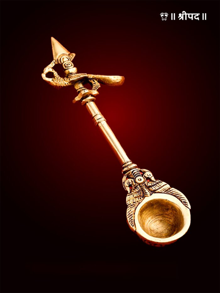 Made from high-quality brass, this spoon is ideal for performing Pooja or Havan, as it ensures durability while adding a divine aura to the occasion. The engraved designs on the handle enhance the aesthetic appeal, making it not just a functional item, but a piece of art that elevates the sanctity of any prayer ceremony.