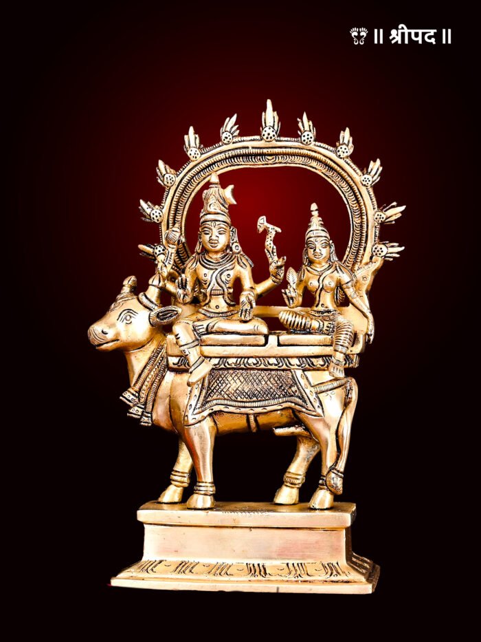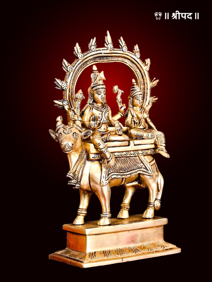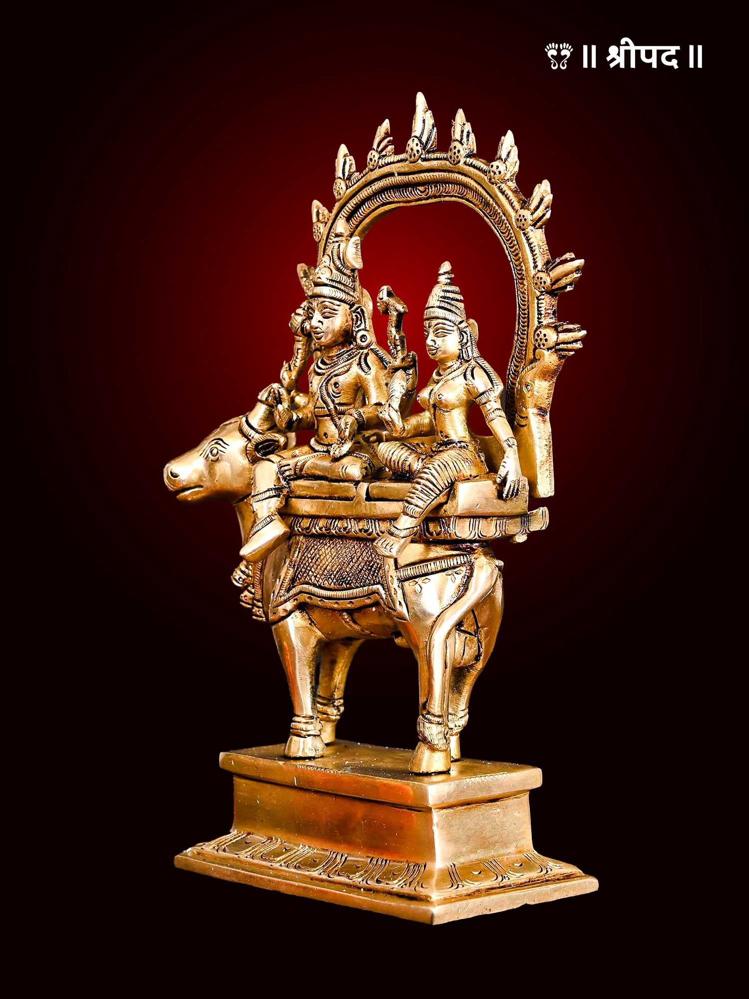 Superfine Shiva Parvati with Nandi Idol | 9-Inch | Brass