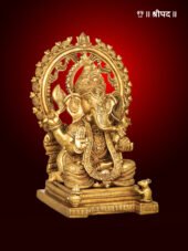 The 13-inch brass statue of Throne Ganesha with Marching Rats Aureole is a majestic depiction of Lord Ganesha, the beloved remover of obstacles and harbinger of success. Sitting regally on an ornate throne, Ganesha exudes divine authority and serenity, his calm expression radiating wisdom and blessings. The intricate aureole surrounding him is adorned with delightful marching rats, his sacred vahana (vehicle), symbolizing humility, resourcefulness, and his ability to overcome challenges.