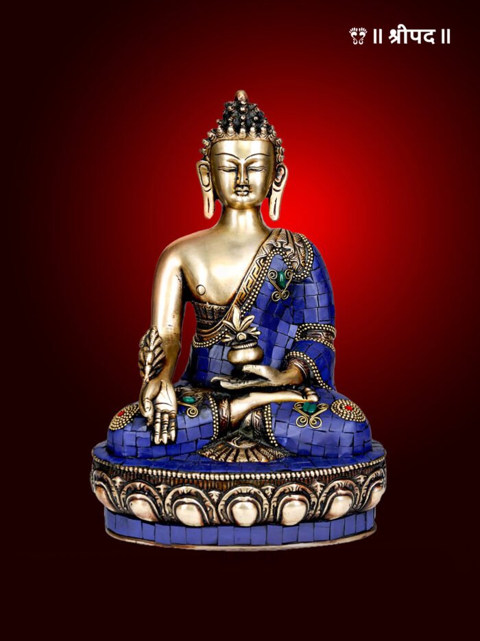 Tibetan Buddhist Deity | Lapis Healing Buddha (Inlay Statue) | 11-Inch | Brass