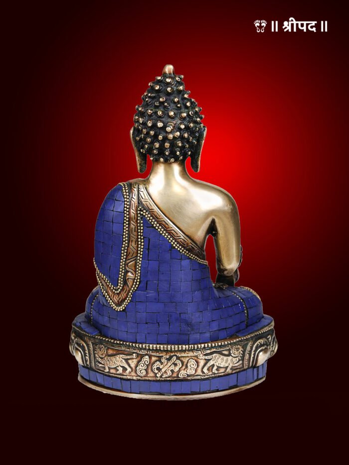 The 11-inch Tibetan Buddhist Deity Lapis Healing Buddha Inlay Statue is a captivating fusion of Tibetan Buddhist tradition and artistic craftsmanship. This exquisite statue depicts the Healing Buddha, also known as the Lapis Buddha, symbolizing physical, mental, and spiritual healing. Crafted from high-quality brass, the statue features intricate inlay work with vibrant lapis lazuli stones, enhancing the deity’s divine aura. The Buddha is portrayed in a serene seated posture, with his hands resting in a gesture of healing and compassion, radiating a sense of calm and tranquility. The inlaid lapis lazuli stones add a striking contrast, symbolizing the healing power of the universe and the deep connection between body, mind, and spirit. The brass finish lends a timeless golden glow, making it a perfect spiritual addition to any meditation room, altar, or healing space. This statue is not just a piece of art but also a powerful reminder of the Buddha’s teachings on health, healing, and inner peace.