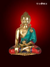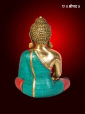 The 19-inch Tibetan Buddhist Lord Buddha in Earth Touching Gesture is a magnificent brass statue that beautifully captures the moment of Buddha’s enlightenment. This exquisite statue depicts the Buddha seated in the classic lotus position, with his right hand gently touching the earth, symbolizing his call to the Earth as witness to his victory over temptation and his attainment of enlightenment. The intricate brass craftsmanship is complemented by delicate inlay work, adding an element of sophistication and detail to the statue. The serene expression on Buddha’s face, combined with the peaceful posture and graceful hand gesture, embodies the core teachings of compassion, wisdom, and spiritual awakening. The rich brass finish, enhanced by the stone inlays, creates a radiant glow, symbolizing the Buddha’s divine presence. This statue is perfect for meditation spaces, altars, or as a decorative piece in any spiritual setting, radiating tranquility and a deep sense of calm, inviting positive energy and enlightenment into the surroundings.
