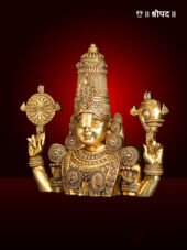 Crafted from premium brass, the bust showcases Lord Balaji adorned with a magnificent crown, intricately detailed jewelry, and sacred symbols. His serene and divine expression radiates peace and blessings, capturing the essence of his celestial presence. The finely engraved features and polished antique finish add an aura of timeless elegance, making it a standout piece for any sacred or living space.