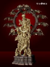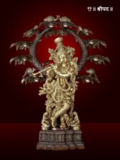 The 34″ Large Tribhanga Murari Krishna Playing Flute Under the Tree Brass Statue is a mesmerizing and artistic portrayal of Lord Krishna in his Tribhanga posture, a graceful three-fold stance that exudes divine charm and beauty. This stunning brass sculpture captures Krishna in his Murari form, holding his flute and serenading the universe with his enchanting melodies, symbolising the eternal connection between the divine and all living beings.