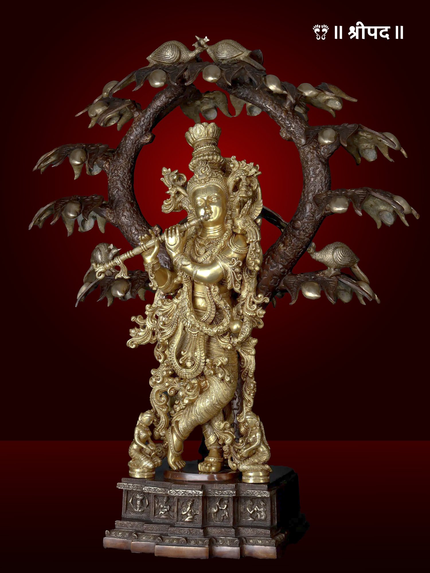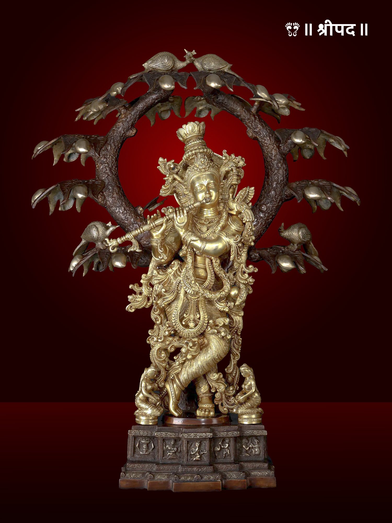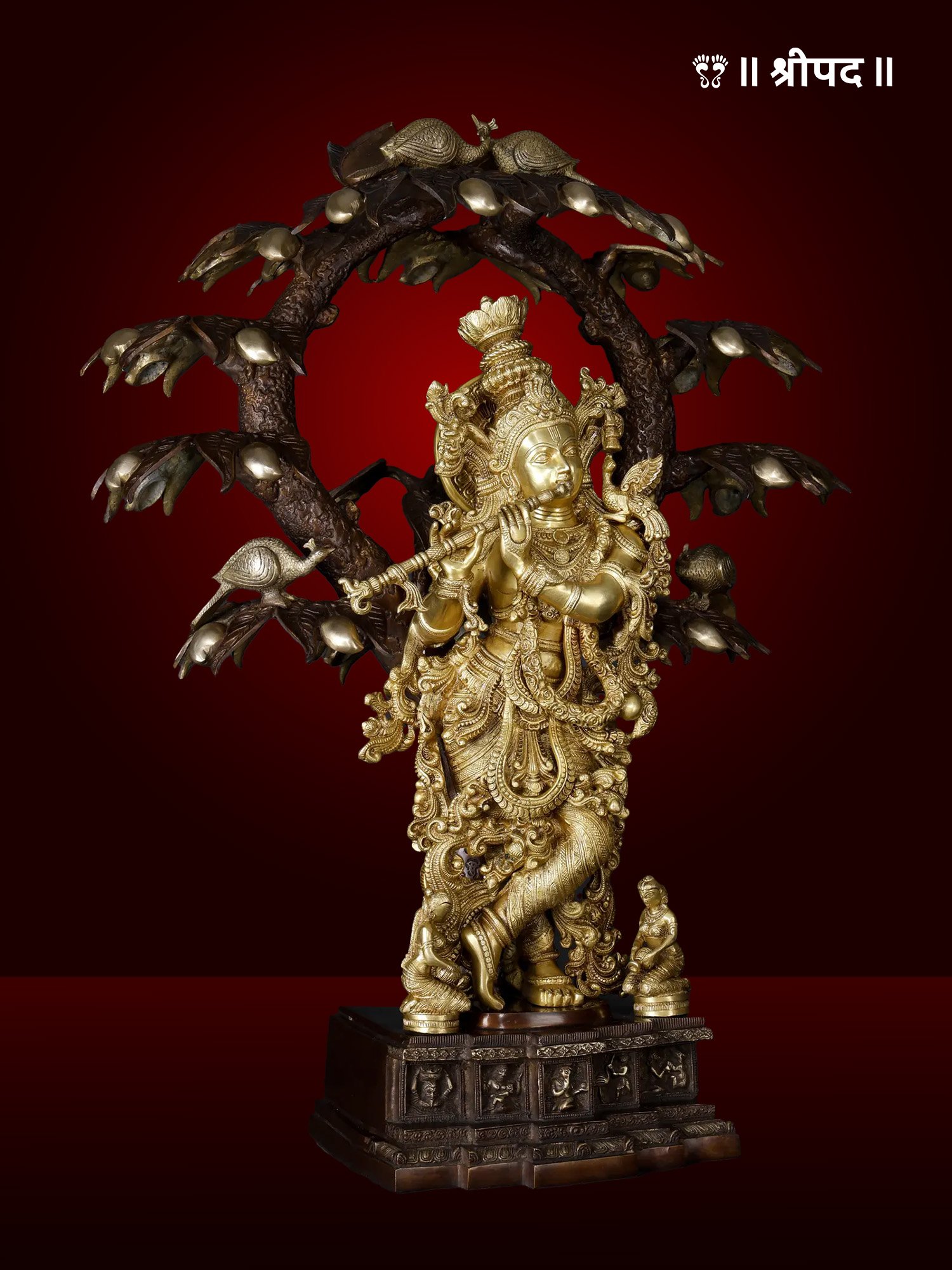 Tribhanga Murari Krishna Playing Flute Under The Tree | 34-Inch | Brass